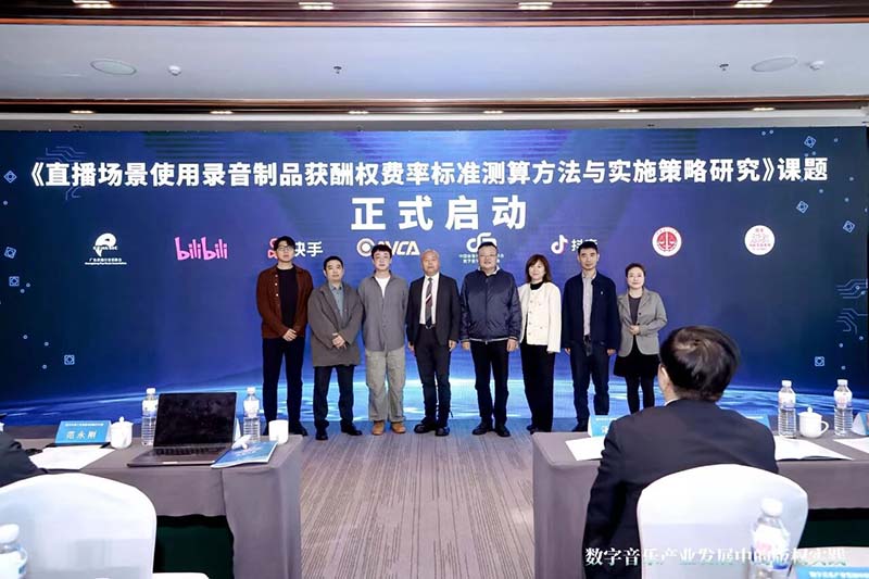 为切实推动我国数字音乐版权良好生态的构建,助力行业重点版权问题逐步得到解决,活动现场,中国音数协数字音乐工作委员会副主任委员兼秘书长刘阳重点介绍了《数字音乐版权信息管理指南》团体标准与《直播场景使用录音制品获酬权费率标准测算方法与实施策略研究》课题两项重要工作的相关情况。据了解,《数字音乐版权信息管理指南》团体标准研制工作集结了行业多方力量,中国音乐著作权协会、中国音像著作权集体管理协会、广东省流行音乐协会、北京印刷学院、腾讯音乐、网易云音乐、快手等单位共同参与其中,将为数字音乐版权信息管理提供科学、统一的标准指引;《直播场景使用录音制品获酬权费率标准测算方法与实施策略研究》课题则由中国音像著作权集体管理协会、广东省流行音乐协会、中国政法大学、抖音集团、快手、哔哩哔哩、国家版权创新发展基地(四川天府新区)等单位联合开展,有望为直播场景下录音制品获酬权的规范实施提供关键支撑。活动现场各参与单位重要代表共同上台正式启动两项目工作,标志着我国数字音乐版权领域在标准化建设与关键问题研究上迈出了重要一步。